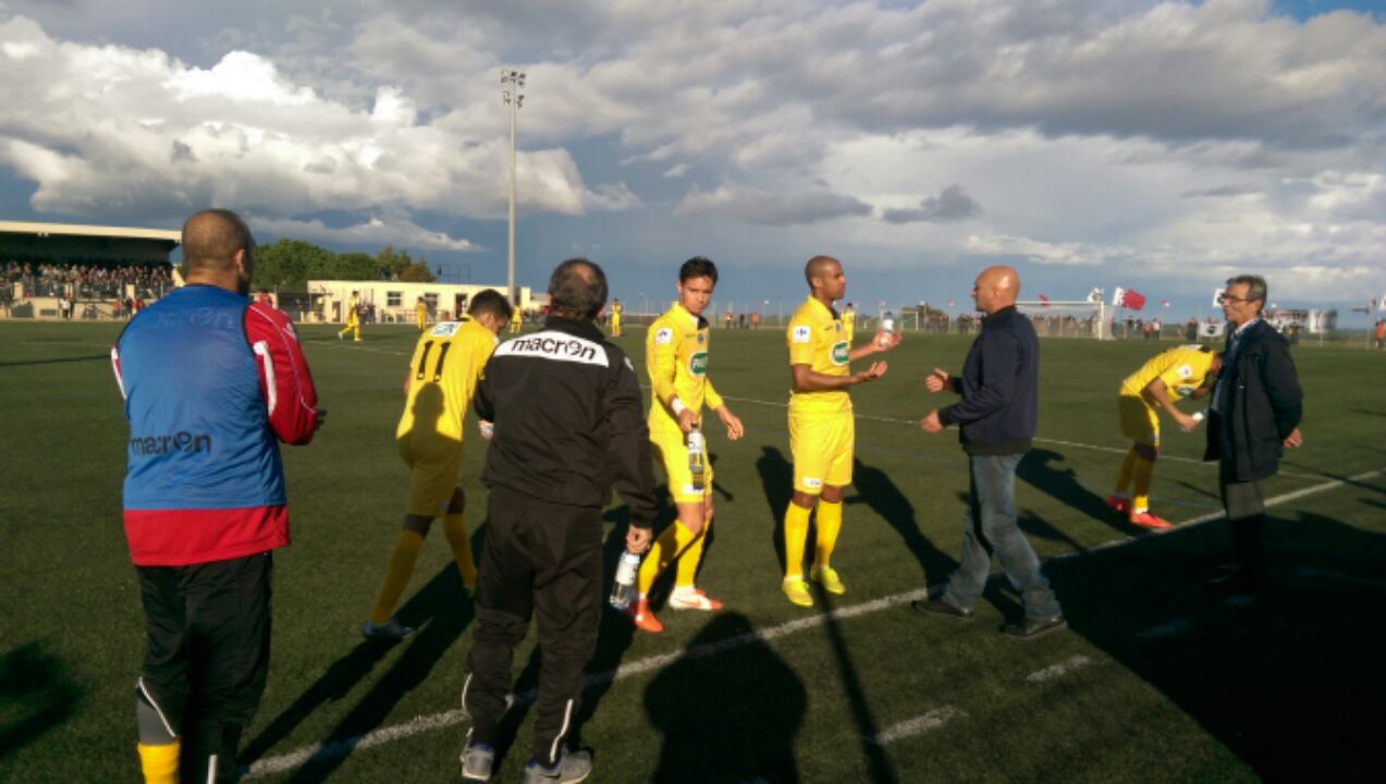 Pour ce 8e tour de Coupe de France, la chance est donnée aux jeunes joueurs de l’effectif. Le coach, Olivier Pantaloni a remanié son 11 de départ et souhaite voir l’ensemble de ses joueurs à l’œuvre. Lors des 45 premières minutes de la rencontre, ce temps de jeu a été mis à profit par certains d’entre eux. C’est le jeune Catalan, Jordi Quintillà qui décrochait rapidement la première frappe de la partie. Mais le portier nordiste se montrait attentif (2’). Marvin Diop prenait sa chance suite à une action de jeu menée sur l’aile gauche avec l’appui de Mouaad Madri, mais sa tentative passait tout près du poteau adverse (15’). Le FC Borgo était dominé mais restait quelque peu menaçant sur ses rares incursions qui se sont avérées payantes à la 20e minute de jeu. Sur un centre de Milleliri venu du côté droit, Éric Marester propulsait malheureusement le ballon au fond de ses propres filets (1-0). Mais la réaction de l’équipe était saine et rapide. Marvin Diop tentait une frappe lointaine, mais ne trouvait pas le cadre (26’). Borgo souffrait de plus en plus même si la frappe de Dimitri Lesueur était dangereuse mais dégager des deux poings par Oumar Sissoko (27’). Puis le ballon de Jordi Quintillà allait tout changer ! Il trouvait Marvin Diop dans le dos de Cascinelli et le ballon revenait sur Mouaad Madri. Le numéro 11 croisait sa frappe et égalisait ! (1-1). Les deux équipes rentraient aux vestiaires sur ce score de parité.